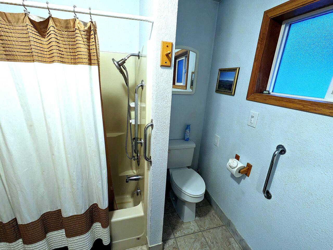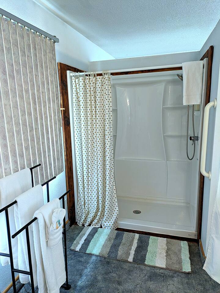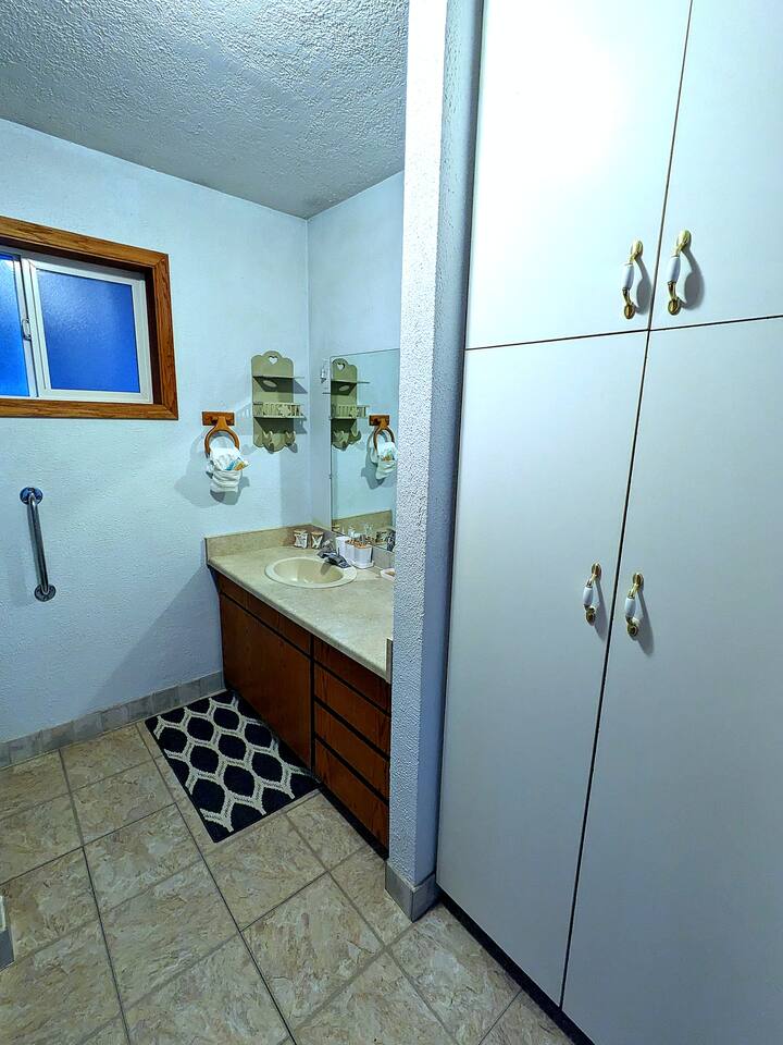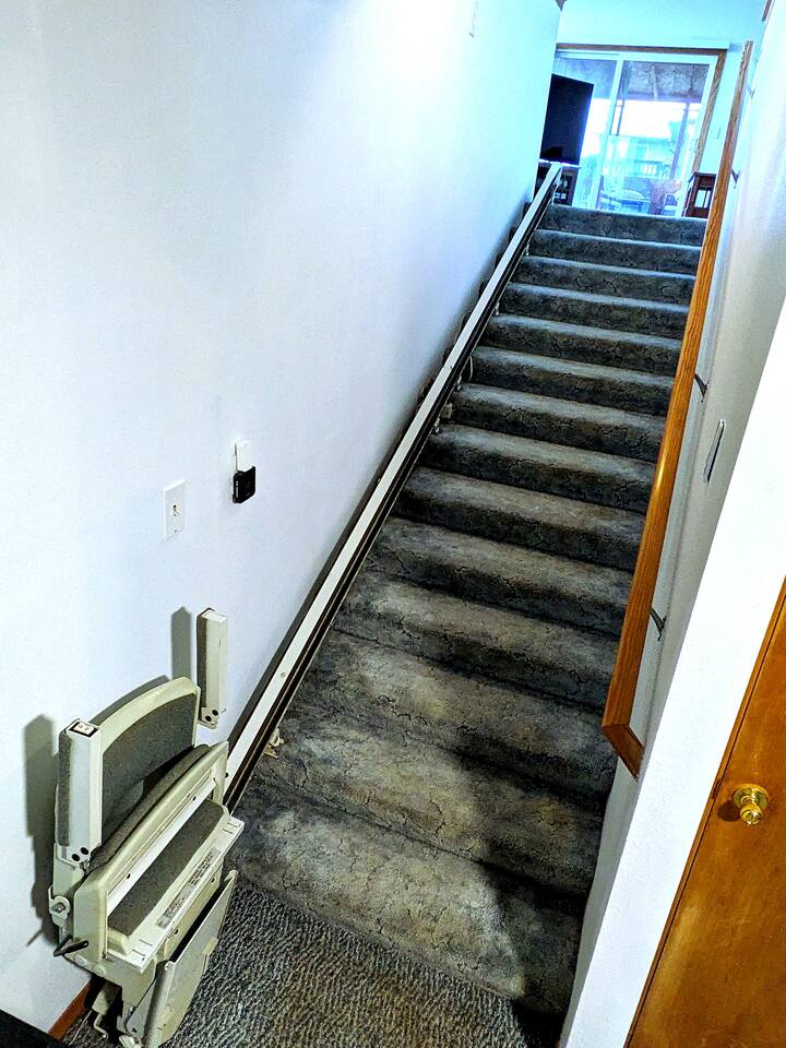Guests have access to the entire home, with the exception of the garage and a small upstairs storage area that is clearly marked for cleaning supplies. The outdoor wheelchair ramp provides access to the second floor, but please note it is a bit steep and may require extra effort to push someone up. Use caution in wet conditions as the ramp can be slippery. There is also an external shop on the property that is not part of the rental. We want you to feel completely at home here, so if you have any questions about accessibility or the layout, just let us know.