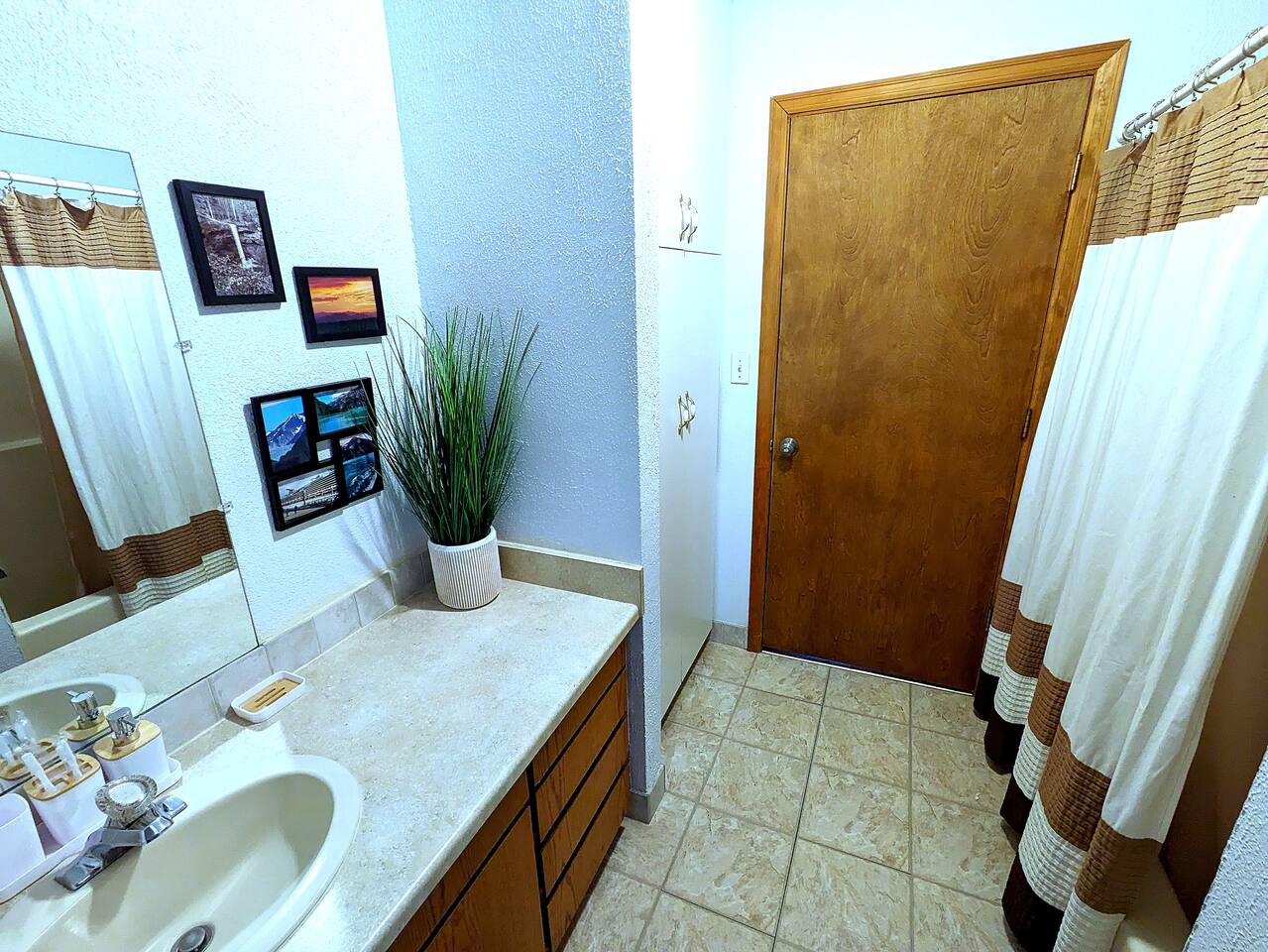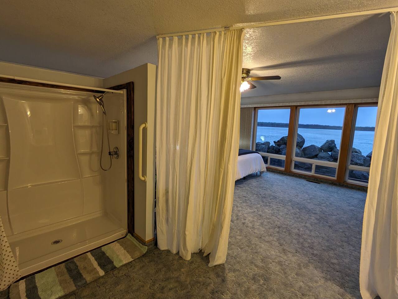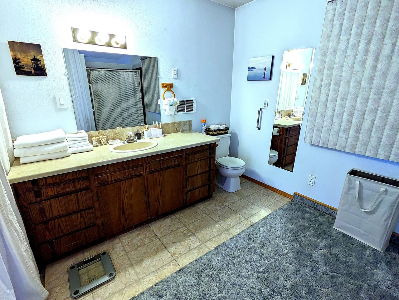 Guests have access to the entire home, with the exception of the garage and a small upstairs storage area that is clearly marked for cleaning supplies. The outdoor wheelchair ramp provides access to the second floor, but please note it is a bit steep and may require extra effort to push someone up. Use caution in wet conditions as the ramp can be slippery. There is also an external shop on the property that is not part of the rental. We want you to feel completely at home here, so if you have any questions about accessibility or the layout, just let us know.